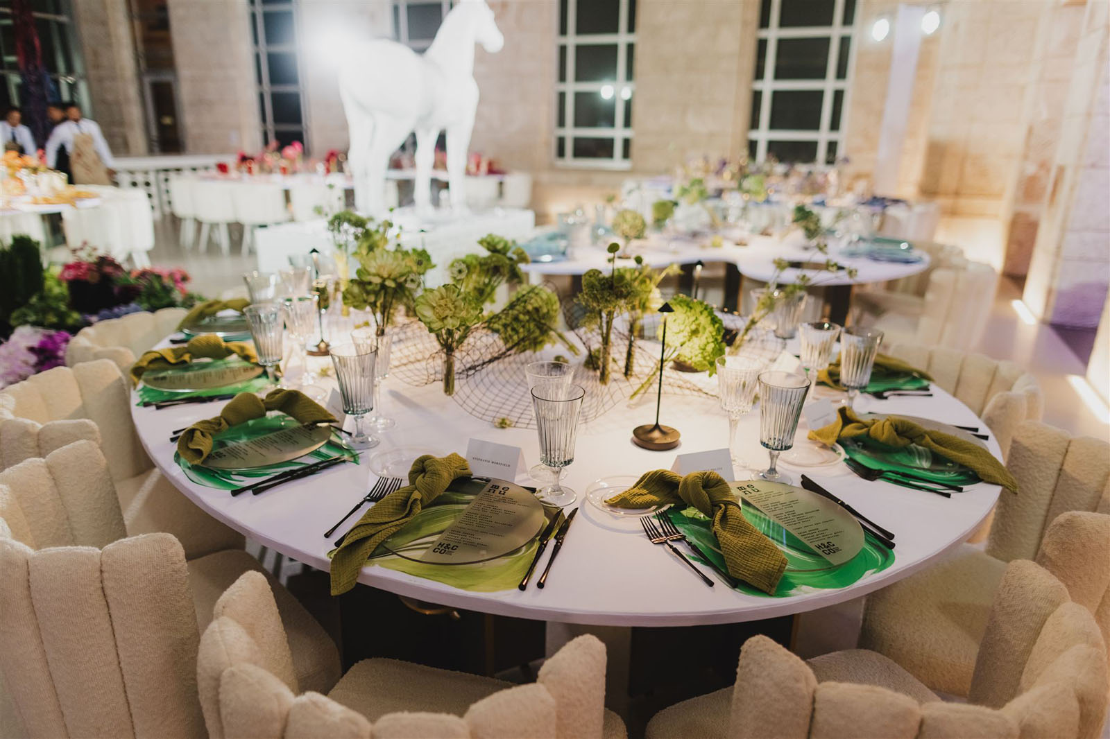 Inside the iconic walls of The Bass Museum, this Miami corporate dinner unfolded as a living work of art—an evening where creation and connection blurred seamlessly together. Guests were seated at custom-designed, palette-shaped tables that brought them up close to a harmonious symphony of color, each arrangement thoughtfully composed to feel intentional yet organic.