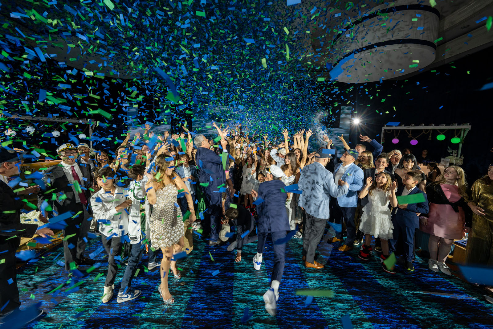 For this vibrant Bar Mitzvah celebration, the Ritz-Carlton Coconut Grove was completely reimagined as a sun-drenched Newport escape, channeling the effortless charm of New England summers the family holds dear. The décor unfolded in a palette of crisp whites, nautical blues, and spirited touches of red and green, layered with playful boardwalk references that felt both nostalgic and fresh. Elevated yet relaxed, the atmosphere struck a perfect balance between coastal polish and carefree seaside glamour.